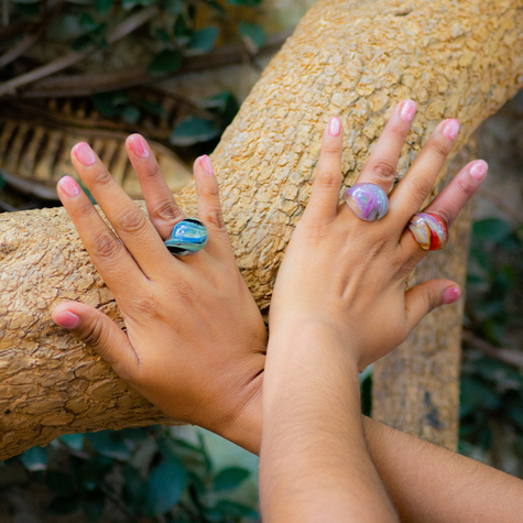 Desde Oaxaca, Sarahy Ramírez transforma el borosilicato con la técnica de flama, dando vida a joyería y objetos únicos que celebran la naturaleza y lo cotidiano. Cada pieza es un universo en sí misma: formas orgánicas, transparencias y colores que evocan flores, plantas y paisajes del entorno oaxaqueño.
